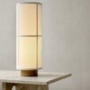 HASHIRA est une collection de lampes pour les espaces modernes. La lampe à poser HASHIRA est une version moderne et nordique de la lanterne japonaise traditionnelle en papier de riz. L’abat-jour en tissu translucide agit comme un diffuseur, projetant une lumière chaude dans de multiples directions.